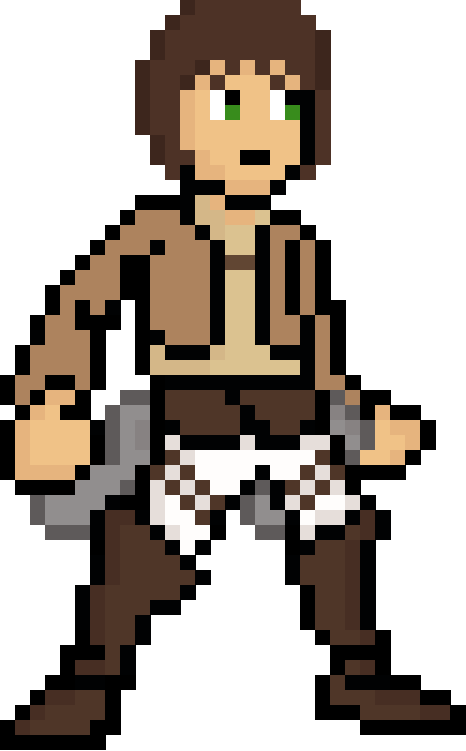 I copied my Armin Arlert fighter pixel art that was derived off f my Naruto pixel art and made it an Eren Yaeger fighter!!! <3