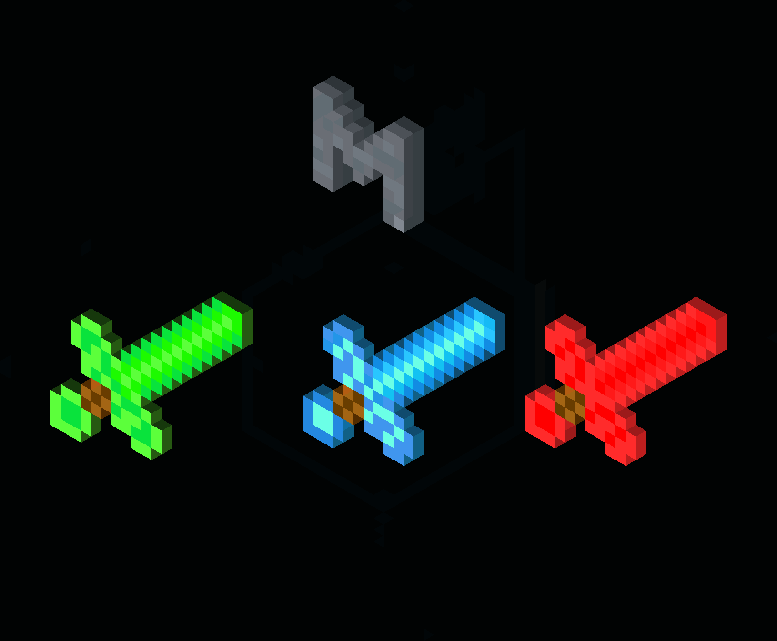 3D Minecraft Icey / Fire / Grass Sword