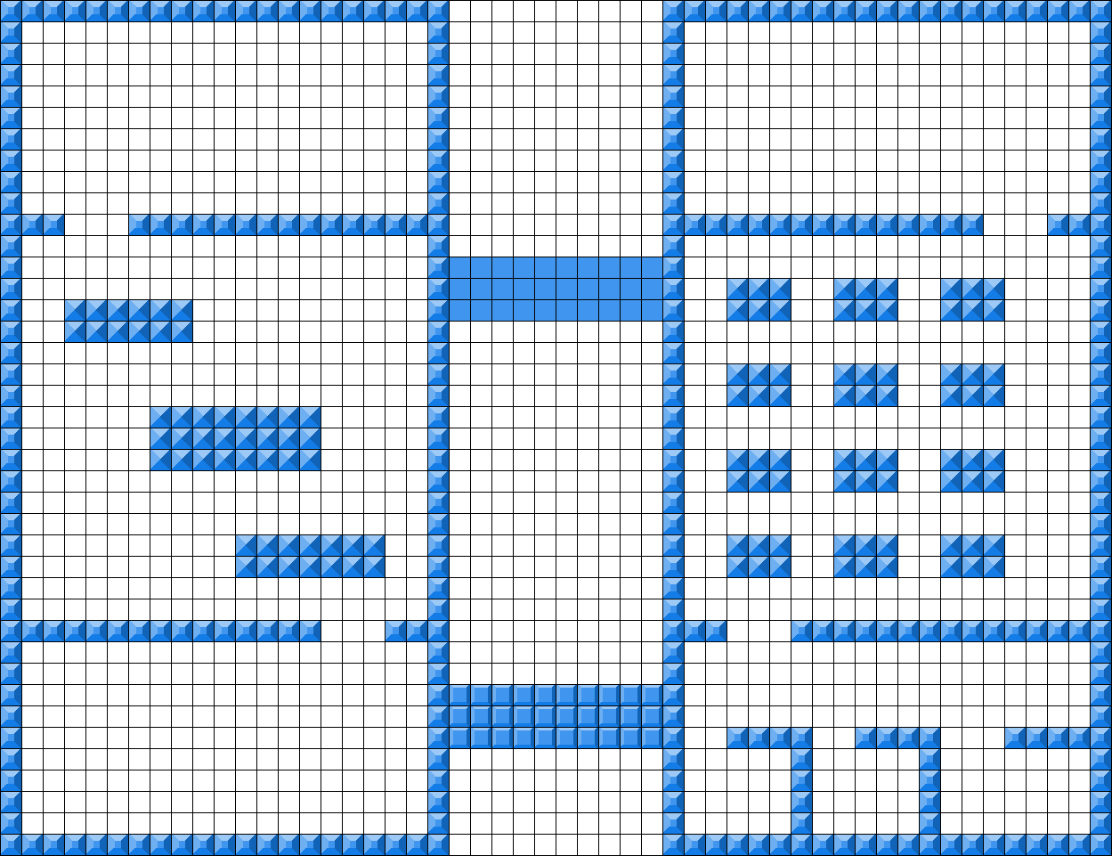 Pyramids are cover. Small top squares are walls. Large top squares/solid squares are walkable. Enclosed white space is walkable.