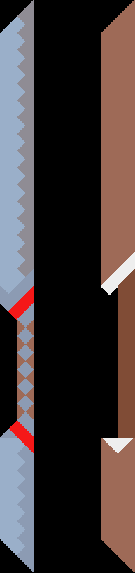 A blade of about a meter long, usually held with the shorter blade pointed up and and out, the longer blade held along them arm.