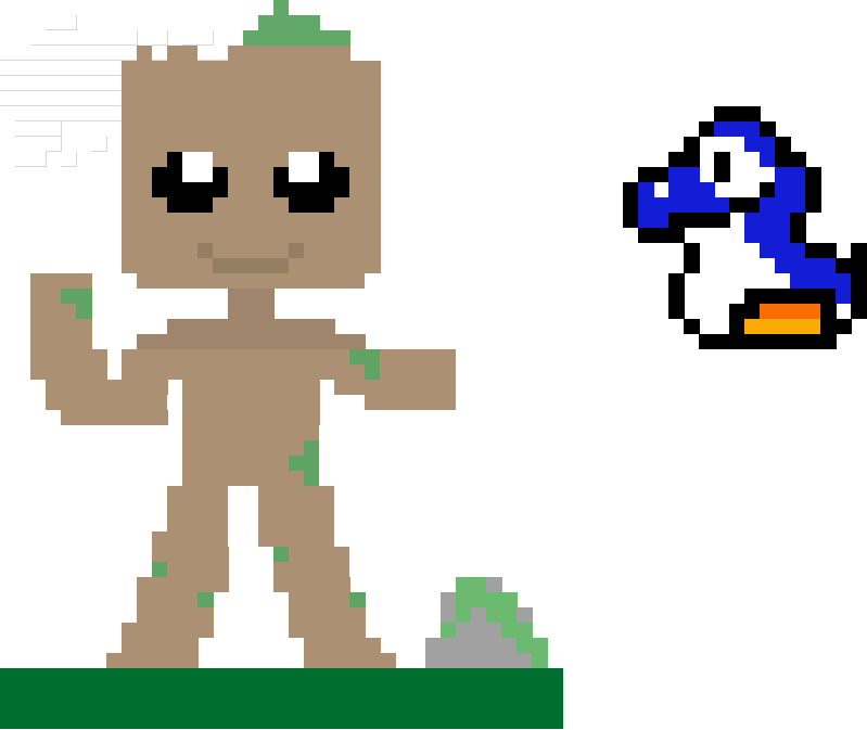 baby groot and a blue baby yoshi