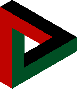The Penrose triangle, also known as the Penrose tribar, or the impossible tribar,[1] is a triangular impossible object. It was first created by the Swedish artist Oscar Reutersvärd in 1934. Independently from Reutersvärd, the psychiatrist Lionel Penrose and his mathematician son Roger Penrose devised and popularized the triangle in the 1950s, describing it as "impossibility in its purest form". It is featured prominently in the works of artist M. C. Escher, whose earlier depictions of impossible objects partly inspired it.