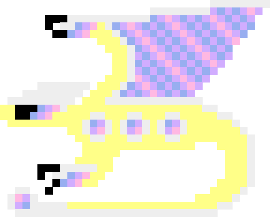 Apologies for posting this redesign so late in the day, I’ve been busy with other things for most of today. Now then, the last of my original 5 Light dragons is a design that, similar to all but one of the others, I really can’t think to change in any significant way. I changed the colors of like 3 pixels on the head and tail but aside from those I have no reason to alter anything else. This is a dragon that I didn’t have the clearest idea of how I wanted it to look when I first drew it, but once I landed on this look- especially with the blue, purple, and pink gradient patterns- I knew it was a winner. That feeling is still strong to this day and likely won’t be going away anytime soon, so I hope all of you enjoy this design as much as I do and I’ll see you next weekend for the last of the ten elements: Shadow!