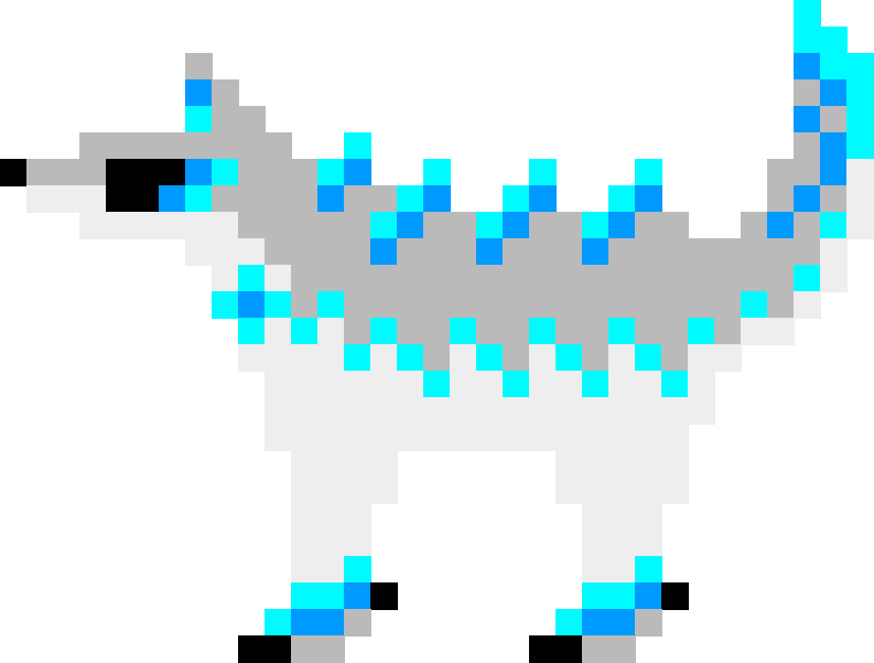 Alright, after several days of tweaking this design, I can finally present to you all the first of my Ice element creatures: the Chill Wolf! The inspirations behind this one should be fairly obvious, as it’s mainly based on the Arctic Wolf and wolves in general have a very strong association with winter and the cold, so this one felt like a no-brainer for me. The design itself is actually based off of a Roblox game I used to play all the time called Creatures of Sonaria, and one of the mechanics in that game were these plushies you could attach to your creatures to give them stat boosts, and there just so happens to be an Ice Wolf plushy among that roster. So, taking a lot of design elements from that little guy and adding my own, we end up with this good frosty boy right here! It was pretty hard figuring out exactly what I wanted to add to this design to make it feel more unique, hence why it took me so dang long to finish it, but I think I’m happy with what I’ve ended up with now, so I hope you guys like it too and I’ll be back soon for the next beast of Ice! (hopefully it won’t take me nearly as long to get that one out)